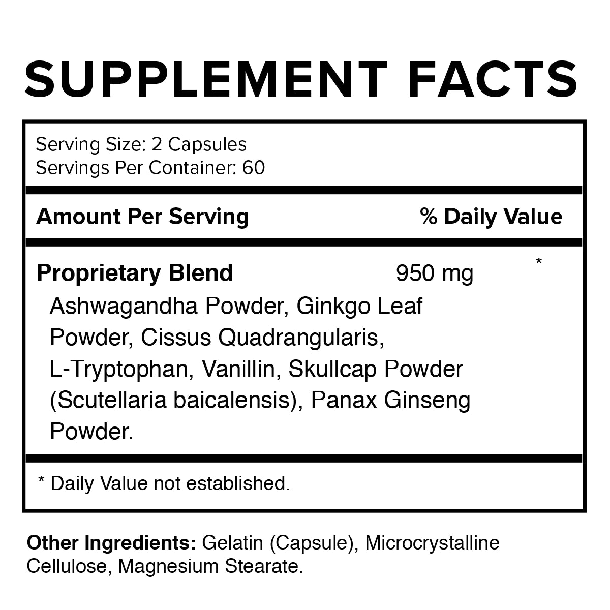 Daily Zen is designed to cope with day-to-day system stress. Benefits include: reduced stress, relaxation, and improved memory and focus. All supplements are 100% drug-free. Includes 120 capsules (take two per day).
